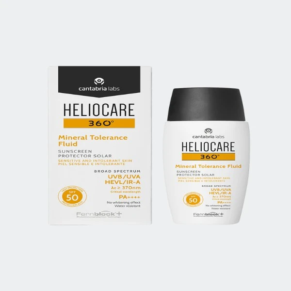 The Heliocare 360 Mineral Tolerance Fluid SPF50 is specially formulated for individuals with highly reactive, sensitive, or compromised skin — including post-laser, post-peel, and post-aesthetic-procedure skin. Utilising only mineral UV filters (Zinc Oxide and Titanium Dioxide), this formula avoids chemical sunscreen agents entirely, significantly reducing the risk of irritation or allergic reaction.